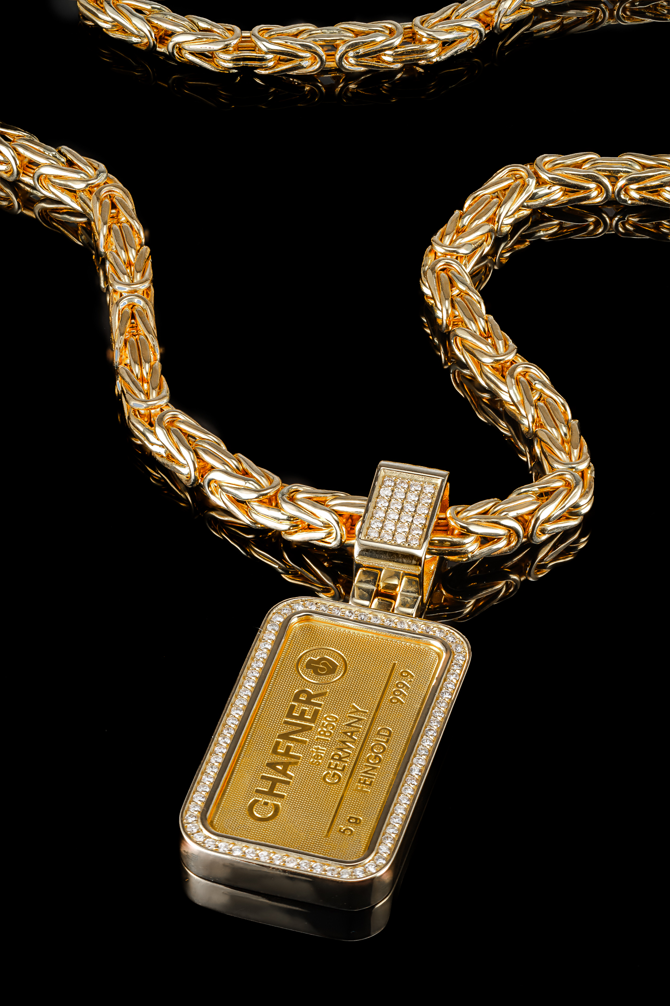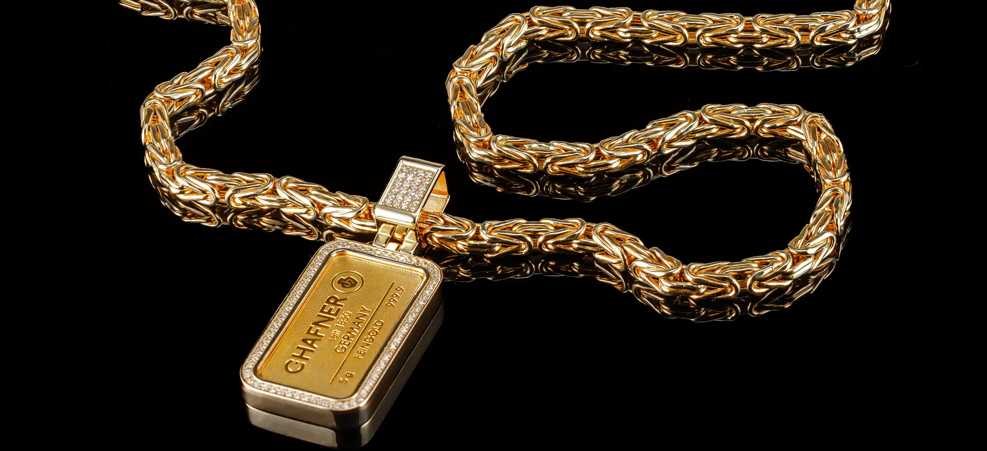 The pursuit of perfect form, a passion for detail, artistic vision, and dedication to jewellery tradition are expressed in the hand-crafted work of the M&M GOLD workshop team when creating gold necklaces with bullion bars.